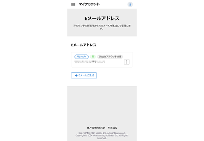 - 連携したEメールアドレスに「Googleアカウント連携」 が表示されていれば完了です。